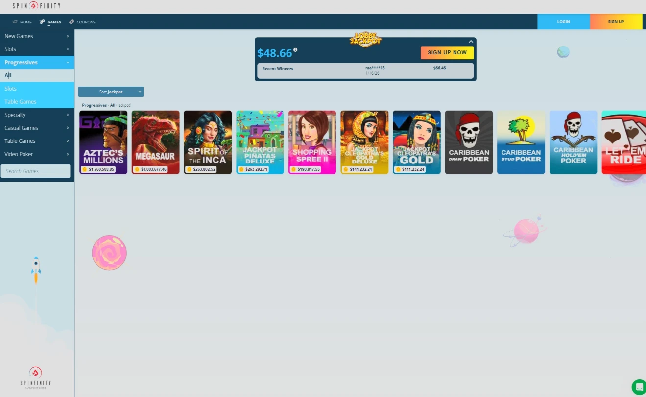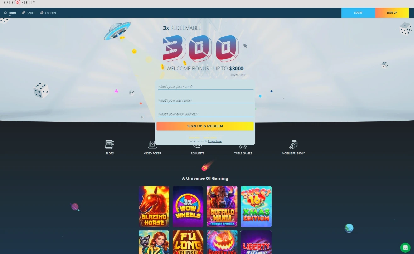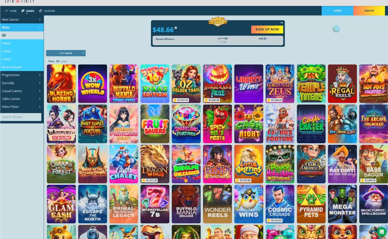 Spinfinity doesn’t do small bonuses. Their offers are huge (300%-500%), designed to give you a massive bankroll to hunt jackpots. Just remember: these are “Sticky” bonuses.